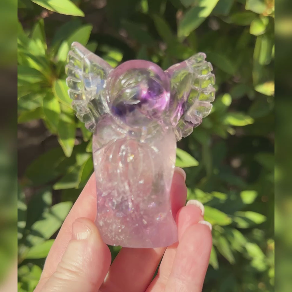 This is a beautiful Elestial Amethyst Angel. This was hand carved by Leandro de Souza in Brazil.
