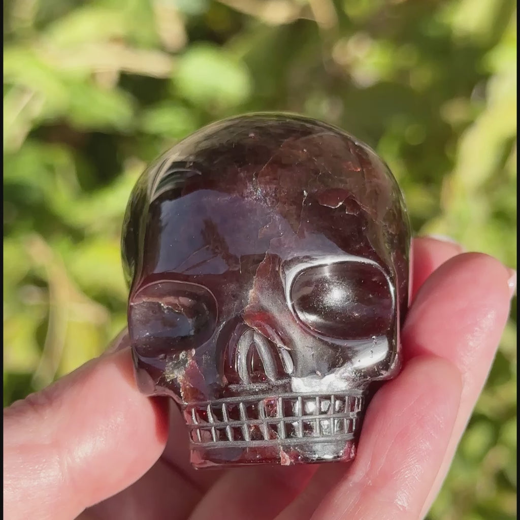 This is a Star Garnet Magical Child Crystal Skull. This skull was carved by Leandro de Souza in Brazil. Rare and stunning!