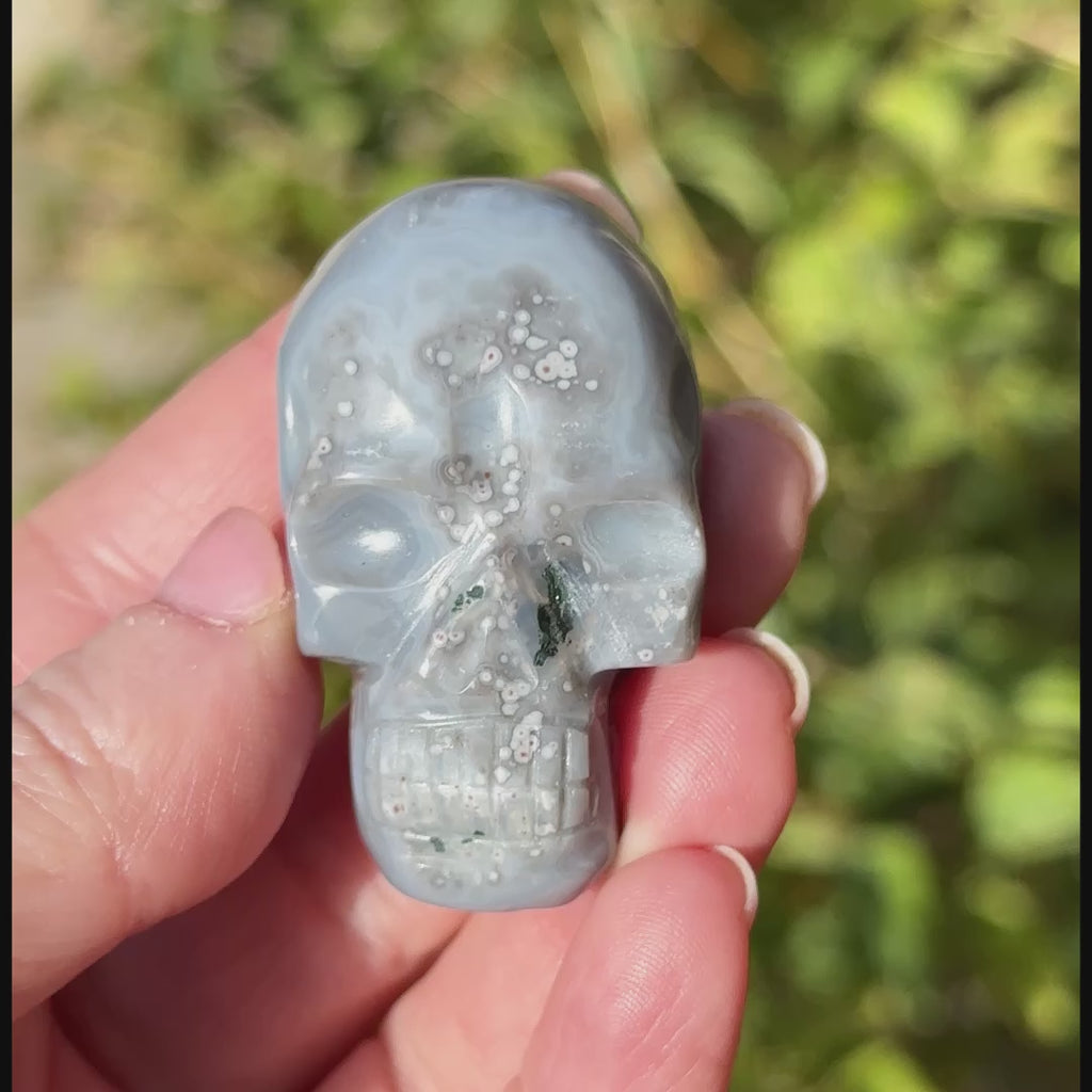 This is a stunning Agate with Amethyst Crystal Skull. This was hand carved by Igor de Souza in Brazil.